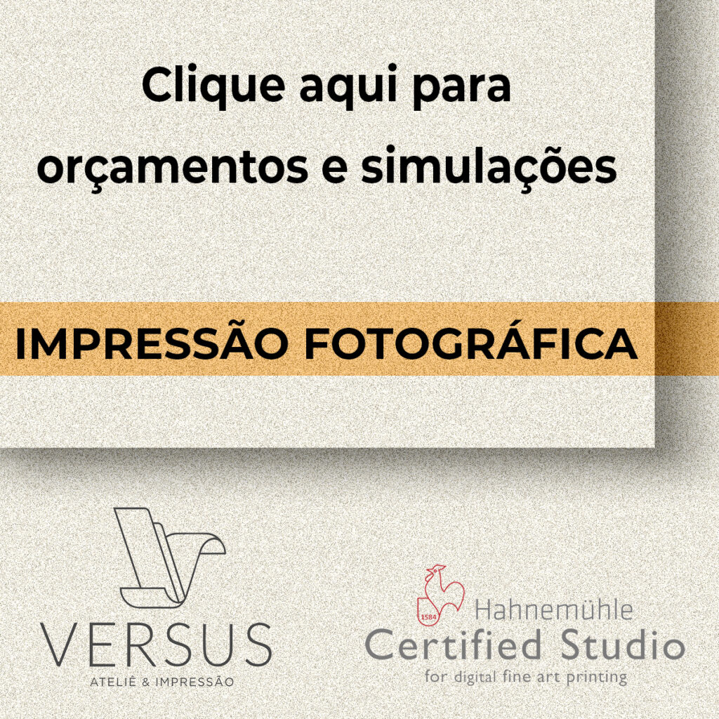 Somos a Versus, um ateliê de impressão Fine Art e Fotográfica em Porto Alegre, RS. Nosso trabalho é focado na qualidade e personalização com atendimento via email (contato@versus.art.br) e whatsapp ( 51 996568252).Por estes canais podemos também agendar atendimento presencial. Atuando desde 2014, a Versus é o primeiro estúdio certificado pela Hahnemuhle no Rio Grande do Sul.Nos adaptamos a sua necessidade de atendimento: online ou presencial. Enviamos para todo Brasil. Qualquer dúvida mande uma mensagem para nosso whats: 51 996568252 ou contato@versus.art.br Muito obrigado!