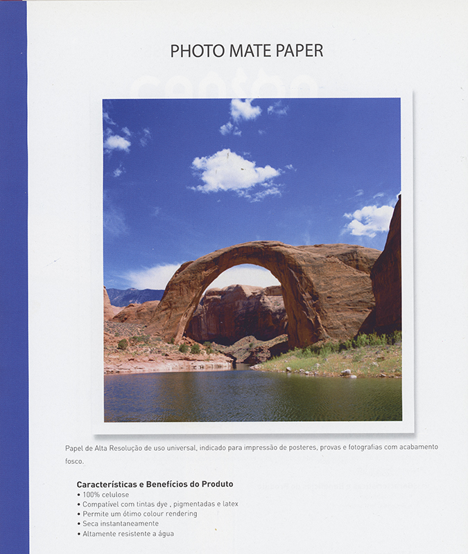 O Canson Photo Matte tem uma versão em menor gramatura, com 140gsm. Indicado para imagens com pouca carga de tinta e que serão adesivadas em material rígido como foamboard.
